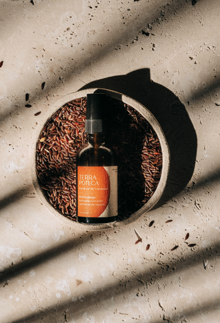 Eau de riz rouge biologique : riche en actifs anti oxydants et apaisants.
